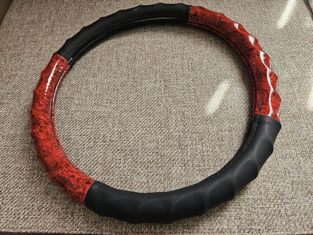 Premium Red Wood Finish Anti-Slip Steering Wheel Cover