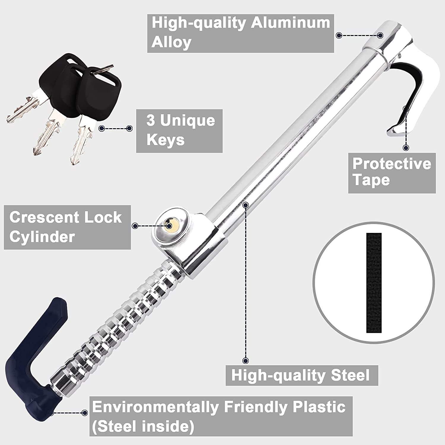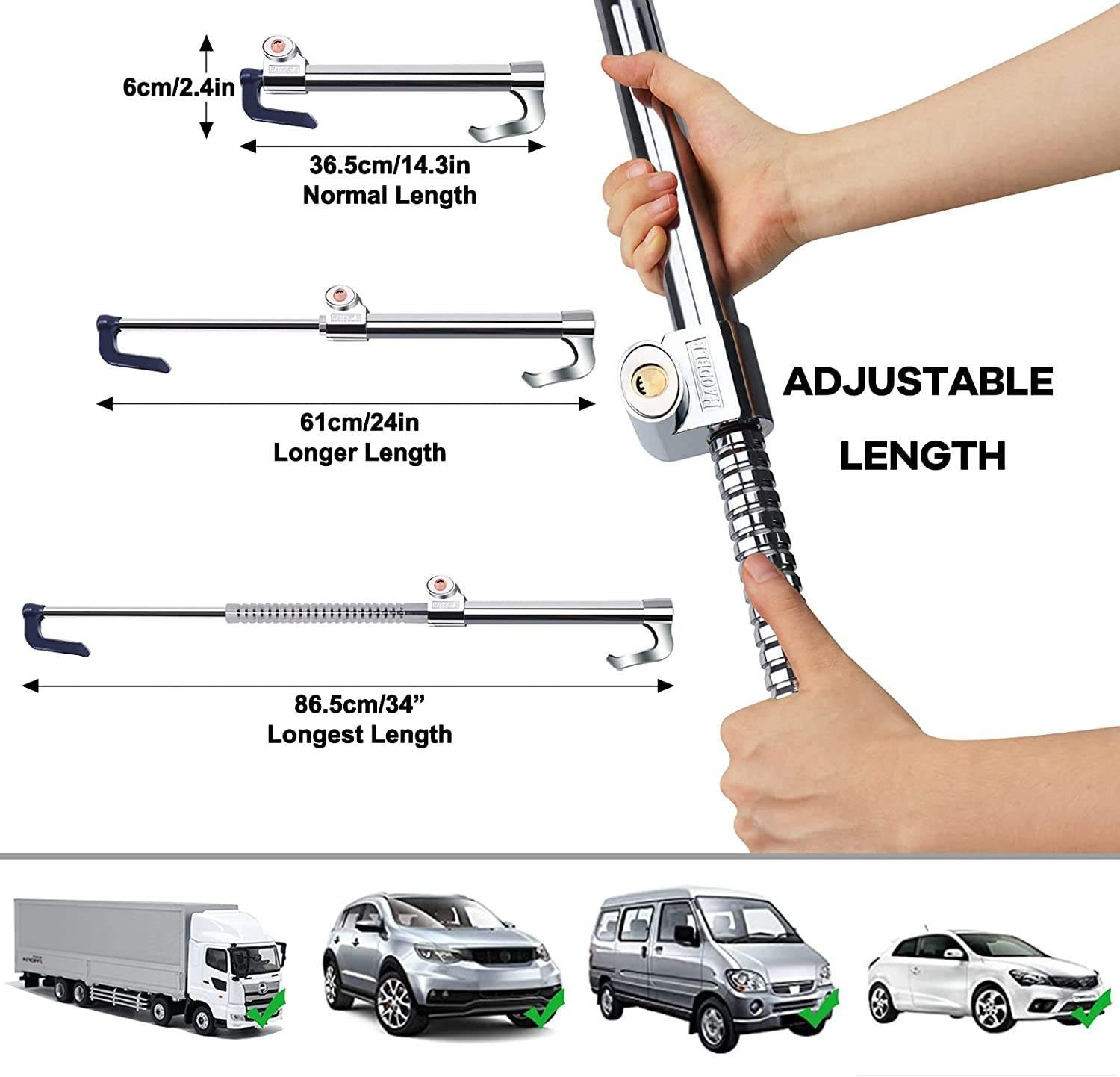 This steering wheel lock adds an extra layer of security to your vehicle, giving you peace of mind whether parked at home, office, or outdoors.
